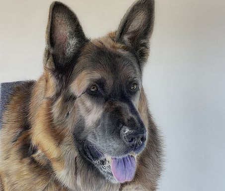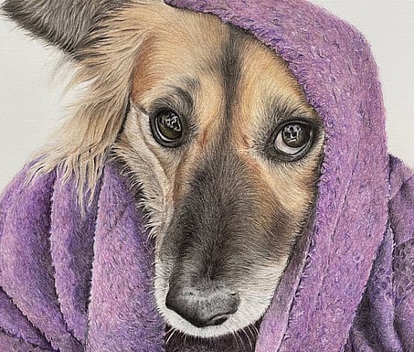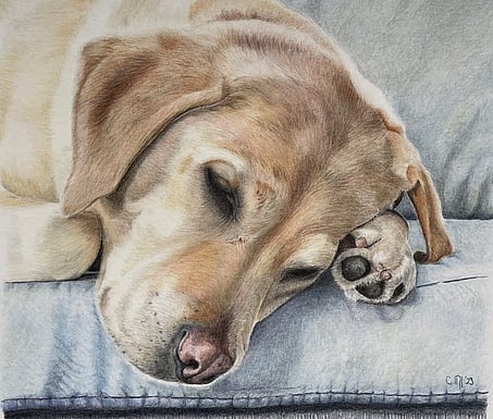 Not just man’s best friend, woman’s too. These dogs all belong to my family and extended family and were an important part of gaining the skills needed to be a coloured pencil artist.